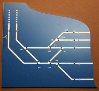 Auf einen zweischichtigen Kunststoff, den es in vielen Farben gibt, wird das stilisierte Gleisbild aufgelasert